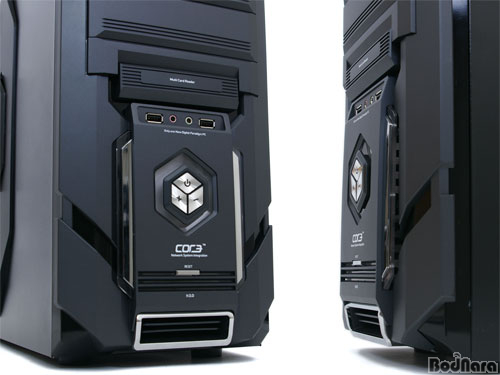 Çí»çÀÇ Àü¸é¿¡´Â 4°³ÀÇ 5.25ÀÎÄ¡ ¿ÜºÎ º£ÀÌ¿Í 1°³ÀÇ 3.5ÀÎÄ¡ ¿ÜºÎ º£ÀÌ, 2°³ÀÇ USB Æ÷Æ®¿Í ¿Àµð¿À Æ÷Æ®°¡ ¹èÄ¡µÇ¾î ÀϹÝÀûÀÎ ¹ÌµéŸ¿ö ÄÉÀ̽º¿Í ±â´ÉÀûÀ¸·Î´Â Å« Â÷À̰¡ ¾øÀ¸³ª, µðÀÚÀÎÀº ÈæÃ¶»ö Ä÷¯¸¦ »ç¿ëÇÑ ¿ÜºÎ ÇÁ·¹ÀÓ°ú ÇÏÀ̱׷νà ó¸®ÇÑ ºí·¢ »ö»ó ³»ºÎ ÇÁ·¹ÀÓÀÇ 2Áß Àü¸é ÆÐ³ÎÀ» »ç¿ëÇϰí, Àü¿ø ¹öư°ú ÆÒ ÄÁÆ®·Ñ·¯ ¹öưÀ» 6°¢ µðÀÚÀÎÀ¸·Î ¹èÄ¡ÇØ ±â°èÀûÀÎ ºÐÀ§±â¸¦ ¿¬ÃâÇÑ´Ù.
