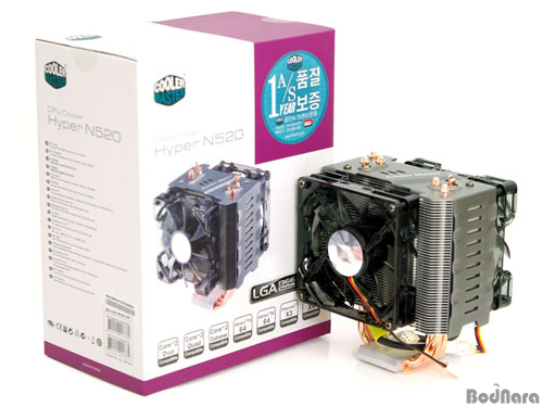 CoolerMaster Hyper N520Àº 5°³ÀÇ UÀÚÇü È÷Æ®ÆÄÀÌÇÁ¸¦ »ç¿ëÇÑ Å¸¿öÇü °ø·©½Ä Äð·¯Áö¸¸ 92mm ÆÒÀ» µà¾ó·Î ±âº» ÀåÂøÇØ µÎÅùÇÏ´Ù´Â ´À³¦À» ¹Þ´Â´Ù. ¾Ë·ç¹Ì´½ ÀçÁúÀÇ È÷Æ®½ÌÅ© À§¸¦ ¿ª½Ã ¾Ë·ç¹Ì´½ ÇÁ·¹ÀÓÀ¸·Î µ¤¾î ¿­Àüµµ È¿°ú¿Í ÇÔ°Ô ÇÉ ÈÖ¾îÁüÀ» ¹æÁöÇß´Ù. ¿ø·¡´Â LGA1366, LGA775, AMD¿ë Ç÷¹ÀÌÆ®¸¸ Á¦°øÇßÁö¸¸ LGA1156 Áö¿øÀ» À§ÇÑ »õ·Î¿î ¹é Ç÷¹ÀÌÆ®¿Í ¸®ÅÙ¼Ç Ç÷¹ÀÌÆ®¸¦ Ãß°¡Çß´Ù.