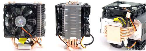 CoolerMaster(Ä𷯸¶½ºÅÍ)¿¡¼­ ¸¸µç Hyper 212 Plus´Â 4°³ÀÇ È÷Æ®ÆÄÀÌÇÁ¸¦ »ç¿ëÇÑ °ø·©½Ä Ÿ¿öÇü Äð·¯·Î 3R IceAgeó·³ È÷Æ®ÆÄÀÌÇÁ°¡ Á÷Á¢ CPU¿Í ´êµµ·Ï ¸¸µç HDT ±â¼úÀ» »ç¿ëÇϰí ÀÖ´Ù. LGA1156 ¿Ü¿¡ ÀÎÅÚ LGA1366/775 ¹× AMD AM3/AM2+/AM2 ¼ÒÄÏÀ» Áö¿øÇÑ´Ù. È÷Æ®½ÌÅ©´Â ¾ÕµÚ ¸ð¾çÀÌ ¶È°°Àº ´ëĪÇüÀ¸·Î ±âº» Á¦°øµÇ´Â 120mm ÆÒ ¿Ü¿¡ Ãß°¡·Î ÆÒÀ» ÀåÂøÇØ µà¾ó ÆÒÀ¸·Î ±¸¼ºÇÒ ¼öµµ ÀÖ´Ù.