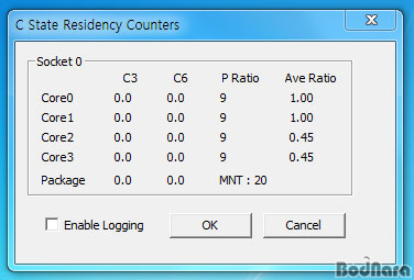 À̹ÌÁöµéÀº ASUS P7P55D ProÀÇ C3/ C6 »óŸ¦ °¢°¢ Ȱ¼ºÈÇßÀ» ¶§ÀÇ Äھ º¯µ¿ »óȲÀ¸·Î °¢ ¸ðµå ¼³Á¤¿¡ µû¶ó ÇØ´ç ºÎºÐÀÇ ¼öÄ¡ º¯È°¡ Å©°Ô ³ªÅ¸³´Ù. C-State »óÅ´ C3/ C6 ¸ðµå »çÀÌ´Â ºÎÇÏ¿¡ µû¶ó º¯µ¿µÉ ¼ö Àֱ⠶§¹®¿¡ C3¿Í C6 ºÎºÐÀÇ ¼öÄ¡°¡ ¸ðµÎ º¯µ¿µÉ ¼ö ÀÖ´Ù. C State Residency Counters´Â °¢ ÄÚ¾îÀÇ C3/ C6 º¯µ¿ »óȲÀ» ms (milliseconds, ¹Ð¸®¼¼ÄÁÁî) ´ÜÀ§·Î ÃøÁ¤ÇÑ´Ù.