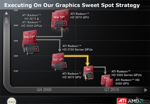 AMD ATI´Â DirectX 11 ¶óÀÔ¾÷¿¡ °í±ÞÇüºÎÅÍ º¸±ÞÇü¿¡ À̸£´Â Á¦Ç°µéÀ» Ãâ½ÃÇ߱⠶§¹®¿¡ ÀÌÁ¦ Àú°¡Çü ¶óÀξ÷ÀÌ ³²¾ÆÀÖ´Ù. À̵é Àú°¡Çü°ú º¸±ÞÇü Áß°£¿¡ À§Ä¡ÇÑ Á¦Ç°ÀÌ ¹Ù·Î ¿À´Ã »ìÆìº¼ ¶óµ¥¿Â HD 5570ÀÌ´Ù.     DX11 ¶óÀξ÷ÀÌ °ÅÀÇ ¿Ï¼º