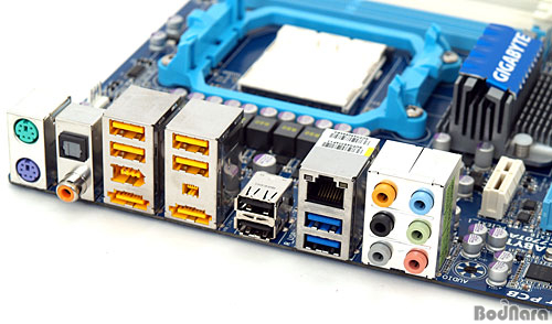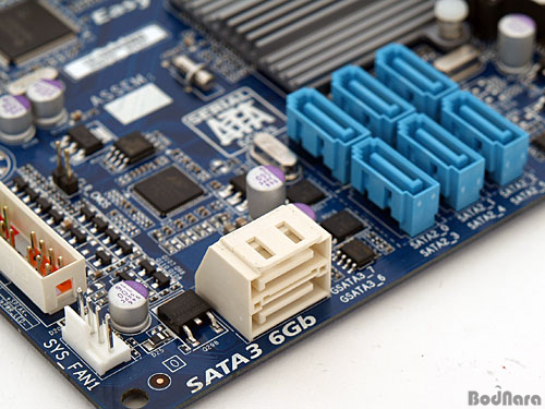 SB710 Ĩ¼ÂÀ» ÀåÂøÇϰí ÀÖ¾î °ø½ÄÀûÀ¸·Î USB 3.0 (5Gbps)°ú ´õºÒ¾î SATA3 (6Gbps)¸¦ °ø½ÄÀûÀ¸·Î Áö¿øÇÏÁö ¸øÇϱ⠶§¹®¿¡ ¿ÜºÎ ÄÁÆ®·Ñ·¯ÀÎ Marvell 9128À» »ç¿ëÇÏ¿© SATA3¸¦ Áö¿øÇϰí ÀÖÀ¸¸ç, SB710ÀÌ Áö¿øÇÏ´Â SATA2 6Æ÷Æ® ¿Ü¿¡ SATA3 2Æ÷Æ®¸¦ Á¦°øÇÑ´Ù. Marvell 9128 ÄÁÆ®·Ñ·¯´Â RAID 0À» Ãß°¡·Î Áö¿øÇÑ´Ù.
