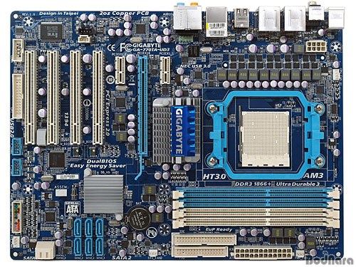 AMD 770 + SB710À» Á¶ÇÕÇÑ ±â°¡¹ÙÀÌÆ® GA-770TA-UD3Àº ±â°¡¹ÙÀÌÆ®ÀÇ 333 ±â¼úÀ» ºñ·ÔÇÏ¿© 8+2 ÆäÀÌÁî·Î ±¸¼ºµÈ ¾ÈÁ¤µÈ Àü¿øºÎ¸¦ Á¦°øÇÑ´Ù. ¶Ç, ACC¸¦ Áö¿øÇÏ´Â SB710 Ĩ¼ÂÀ» ÀåÂøÇϰí ÀÖ¾î ÄÚ¾î °³Á¶µµ Áö¿øÇϰí AM3 ¼ÒÄϱâ¹Ý CPU¿Í DDR3 ¸Þ¸ð¸®¸¦ Áö¿øÇÑ´Ù. ±× ¿Ü¿¡µµ IEEE1394a¿Í eSATA¸¦ Áö¿øÇÏ´Â µî ±â°¡¹ÙÀÌÆ®ÀÇ AMD 770 Ĩ¼Â ±â¹Ý Á¦Ç° Áß 10¸¸¿ø ÃʹÝÀÇ Áß±ÞÇü ¸ÞÀκ¸µå´Ù.