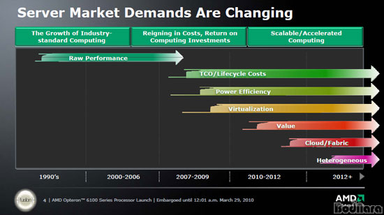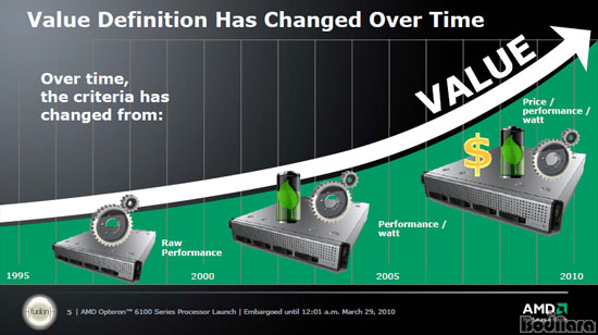 2000³â´ë°¡ µÇ¸é¼ ¼¹ö´Â ¿ÍÆ®´ç ¼º´É(Perfomance/Watt)À» ÁøÁ¤ÇÑ ¼¹öÀÇ ¼º´ÉÀ¸·Î Æò°¡Çϱ⠽ÃÀÛÇßÀ¸¸ç, ÃÖ±Ù 2~3³â¿¡ µé¾î °æ±â ¾ÇÈ µîÀÇ ÀÛ¿ëÀ¸·Î ÀÌÁ¦´Â ¿ÍÆ®´ç °¡°Ý´ë ¼º´ÉÀÌ ¼¹öÀÇ °¡Ä¡·Î Æò°¡¹Þ°í ÀÖ´Ù. AMD°¡ Ÿ°ÙÀ» ¸ÂÃá ºÎºÐÀÌ ¹Ù·Î ¿ÍÆ®´ç °¡°Ý´ë ¼º´É¿¡ ÀÔ°¢ÇÑ Á¦Ç°±ºÀÌ´Ù.