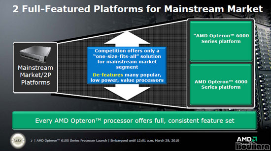 ¶ÇÇÑ AMD´Â ¼¹ö ÇÁ·Î¼¼¼ÀÇ ¼º´É Çâ»óÀ¸·Î ÀüüÀûÀÎ ½ÃÀåÀÌ Ä¿Áö°í ÀÖ´Â 2P Ç÷§Æû ¸ÞÀνºÆ®¸² ½ÃÀåÀ» ¿ÉÅ×·Ð 6000 ½Ã¸®Á »ç¿ëÇÑ °í¼º´É°ú ¿ÉÅ×·Ð 4000 ½Ã¸®Á »ç¿ëÇÑ 2°³ÀÇ Á¦Ç°±ºÀ¸·Î ³ª´«´Ù. °¡Àå Å« Á¡À¯À²À» °¡Áø 2P ¼¹ö ½ÃÀåÀ» 2°³ÀÇ Æ¯Â¡À» °¡Áø ¼¹ö Ç÷§ÆûÀ¸·Î Ä¿¹öÇÑ´Ù.