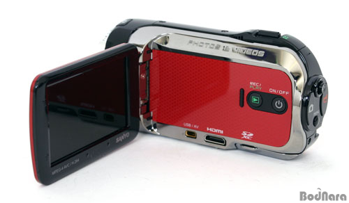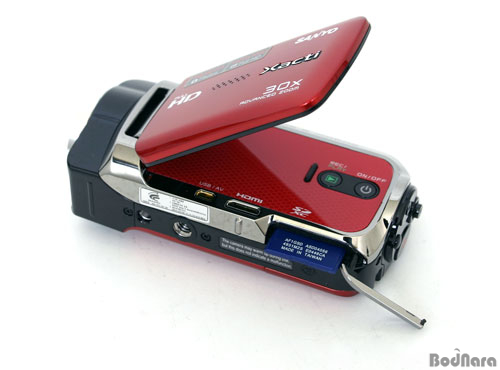 Á¦Ç°ÀÇ ÁÂÃøÀº Æú´õÇü½ÄÀ¸·Î µÇ¾îÀÖ´Â LCD°¡ ÀÚ¸®Àâ°í ÀÖÀ¸¸ç, LCDÈ¸é µÚÂÊ¿¡´Â µ¿¿µ»ó ÃÔ¿µ½Ã ³ìÀ½À» À§ÇÑ ½ºÅ×·¹¿À ¸¶ÀÌÅ©°¡ ºÎÂøµÇ¾î ÀÖ´Ù. ¿ìÃø¿¡´Â ¹èÅ͸®ÀÇ ÀåÂøÀ» À§ÇÑ ¹èÅ͸® Ä¿¹ö¿Í ¹èÅ͸®ÀÇ ÃæÀüÀ» À§ÇÑ Àü¿ø ÄÉÀ̺í Ä¿³ØÅͰ¡ ÀÚ¸®Àâ°í ÀÖ´Ù.