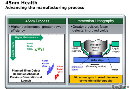 AMD´Â 45nm SOI °øÁ¤°ú À̸ÓÀü ¸®½î±×·¡ÇÇ (Immersion Lithgraphy, ¾×ħ³ë±¤) ±â¼úÀ» Àû¿ëÇÑ ¾Ö½½·Ð2/ Æä³Ñ2 ½Ã¸®Á ¸¸µé°í ÀÖ°í Æä³Ñ2 X6 CPU ¿ª½Ã °°Àº °øÁ¤°ú À̸ÓÀü ¸®½î±×·¡ÇÇ ±â¼úÀ» Àû¿ëÇϰí ÀÖ´Ù.