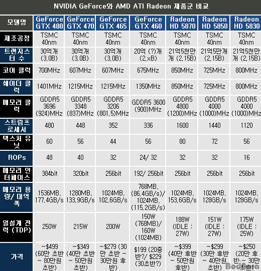 ÀÌ °¡°Ý´ë¿¡¼ ¿£ºñµð¾Æ´Â DX10 ±â¹Ý ÁöÆ÷½º GTX 200 ½Ã¸®Áî°¡ ¹èÄ¡µÇ¾úÀ¸³ª Æä¸£¹Ì±â¹Ý Á¦Ç°µéÀÇ µîÀå¿¡ ¾Õ¼ ÀÏÂï ´ÜÁ¾ ¼öÁØÀ» ¹â¾Æ »õ·Î¿î Ä«µåµéÀÌ ÇÊ¿äÇØÁ³°í ¿£ºñµð¾Æ´Â À̵鿡 ¸Â´Â ±×·¡ÇÈÄ«µå¸¦ ÇÏÀÌ¿£µå¿Í ÆÛÆ÷¸Õ½º ¶óÀξ÷¿¡ ÀÌ¾î °ø°³ÇÒ °èȹÀ» °®°í ÀÖ´Ù. ¿£ºñµð¾ÆÀÇ ÇØ´ç ¶óÀξ÷¿¡ ÀûÇÕÇÑ Á¦Ç°Àº 199´Þ·¯ºÎÅÍ ½ÃÀ۵Ǵ ÁöÆ÷½º GTX 460 ½Ã¸®Áî 2Á¾ Áß 768MB¿¡ µü¸Â´Â °¡°Ý´ëÀ̸ç, °æÀï»çÀÎ AMD ATI¿¡´Â ¶óµ¥¿Â HD 5830ÀÌ °¡°ÝÀÎÇϰ¡ ÁøÇàµÇ¾î ¹èÄ¡µÇ°í ÀÖ¾î À̵éÀÇ Á÷Á¢ÀûÀÎ °æÀïÀÌ ¿¹»óµÇ°í ÀÖ´Ù.