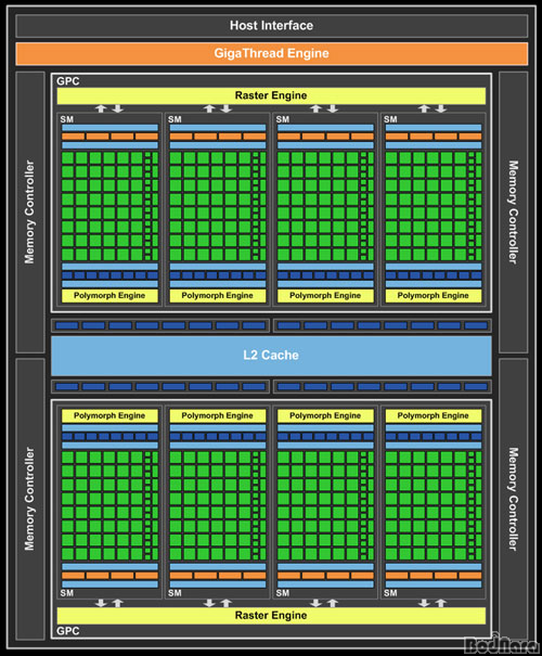 ÁöÆ÷½º GTX 400 ½Ã¸®Áî¿¡ Àû¿ëµÈ GF100Àº ÃÖ´ë 512 Äí´ÙÄÚ¾î (CUDA Cores)¿Í 384bit ¸Þ¸ð¸® ÀÎÅÍÆäÀ̽º, 16 Æú¸®¸ðÇÁ¿£Áø (PolyMorph Engines), 4 ·¡½ºÅÍ¿£Áø (Raster Engines)À¸·Î 4°³ÀÇ ·¡½ºÅͶóÀÌÀú (Rasterizer), 64 ÅØ½ºÃ³ À¯´Ö, 48 ROP ±¸¼ºÀÌ °¡´ÉÇÏ´Ù.