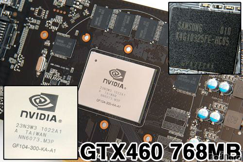 µÎ Á¦Ç°ÀÇ ÄÚ¾î¿Í ¸Þ¸ð¸®ÂÊ ¹èÄ¡´Â µ¿ÀÏÇÏ´Ù. ´Ù¸¸ 768MB ¹öÀüÀº ¸Þ¸ð¸® ÄÄÆ÷³ÍÆ®°¡ 2°³ ºüÁ® 192bit·Î µ¹¾Æ°£´Ù´Â Â÷À̰¡ ÀÖÀ» »ÓÀÌ´Ù. ÄÚ¾î´Â 1GB¹öÀüÀÌ GF104-325-A1, 768MB¹öÀüÀÌ GF104-300-KA-A1À¸·Î ¸¶Å· µÇ¾îÀÖ´Ù. ¾Õ¼ ¸®ºä¿¡¼ ¸î ¹ø ¾ð±ÞÇÑ ´ë·Î µÎ ÄÚ¾î´Â 32 ROPÀÇ Â÷À̰¡ ÀÖ´Ù.