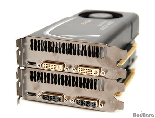 EVGA GTX460ÀÇ °æ¿ì 2°³ÀÇ DVI´ÜÀÚ¿Í 1°³ÀÇ mini-HDMI ´ÜÀÚ°¡ ÀÖ´Ù. ÇÑÁÙ·Î ¸ðµç ´ÜÀÚ¸¦ ¹èÄ¡Çϰí ÀºÎºÐÀº ¹ß¿·Î µ¥¿öÁø °ø±âÀÇ ¹èÃâÀÌ ¿øÈ°Çϵµ·Ï ¹è±â±¸·Î ¸¸µé¾ú´Ù. ¹°·Ð µÎÁ¦Ç° ¸ðµÎ DVI ´ÜÀÚ´Â Dual-link DVI¸¦ Áö¿øÇÏ¿© 30ÀÎÄ¡ µîÀÇ °íÇØ»óµµ ¸ð´ÏÅÍ¿¡µµ ¹®Á¦¾øÀÌ »ç¿ëÀÌ °¡´ÉÇÏ´Ù.