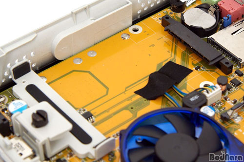 ¸ÞÀκ¸µå¿¡´Â µÚÂÊ¿¡¼ HDD¸¦ °íÁ¤ÇÒ ¼ö ÀÖ¾î º¸ÀÌ´Â º¼Æ® ±¸¸ÛÀÌ º¸ÀÌÁö¸¸, ÀÏ¹Ý ¼ÒºñÀÚ°¡ ÄÉÀ̽º¿¡¼ ¸ÞÀκ¸µå¸¦ »©´Ù°¡ ÆÄ¼ÕÇÒ À§ÇèÀ» ¹æÁöÇϱâ À§ÇØ À̸¦ »ç¿ëÇÏÁö ¾Ê´Â ¹æ½ÄÀ» ¾´ °ÍÀÌ´Ù.