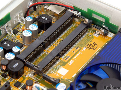 ³ëÆ®ºÏó·³ À§¾Æ·¡¿¡ °ãÃÄ ¼³Ä¡ÇÏ´Â 204ÇÉ SO-DIMM ¸Þ¸ð¸® ½½·ÔÀº DDR3-1066 ¸Þ¸ð¸®¸¦ ÃÖ´ë 8GB ¿ë·®À¸·Î ÀåÂø °¡´ÉÇÏ´Ù. µà¾ó ä³Î ¸Þ¸ð¸®¸¦ Áö¿øÇϱ⠶§¹®¿¡ 1°³ÀÇ ¸Þ¸ð¸®¸¸ ¼³Ä¡ÇÏ´Â °Íº¸´Ù 2°³ÀÇ ¸Þ¸ð¸®¸¦ ³¢¿ì´Â ÂÊÀÌ ¼º´É Çâ»ó¿¡ µµ¿ò µÈ´Ù.