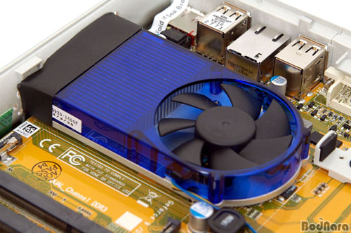 ZBOX ³»ºÎ¿¡ ´Þ¸° À¯ÀÏÇÑ ÆÒÀº CPU¿Í ¸ÞÀκ¸µå Ĩ¼Â Äð·¯·Î ¿ÜºÎ °ø±â¸¦ »¡¾Æµé¿© 2°³ÀÇ Ä¨¼Â¿¡¼ Àü´ÞµÈ È÷Æ®½ÌÅ©ÀÇ ¿À» ½ÄÈù µÚ ´Ù½Ã ¿ÜºÎ·Î ´õ¿öÁø °ø±â¸¦ ¹èÃâÇϵµ·Ï ¸¸µé¾îÁ³´Ù. Äð·¯ ¸ð¾çÀº ÀÏ¹Ý ±×·¡ÇÈ Ä«µå¿¡ µé¾î°¡´Â Äð·¯ ±¸Á¶¿Í ºñ½ÁÇÏ´Ù.