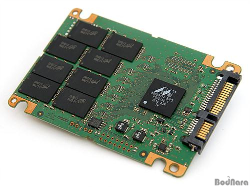 Micron 34nm °øÁ¤À¸·Î ¸¸µç MLC NAND ¸Þ¸ð¸®°¡ žÀçµÇ¾î ÀÖ´Ù. 128G ¸ðµ¨Àº ÇÑÂʸ鿡 8°³¾¿ ¾ç¸éÀ¸·Î 16°³ÀÇ ¸Þ¸ð¸®°¡ ºÎÂøµÇ¾î ÀÖ´Ù. µÞ¸é¿¡´Â ÄÁÆ®·Ñ·¯ Ĩ ´ë½Å ¹öÆÛ ¸Þ¸ð¸®·Î »ç¿ëµÇ´Â DRAM 1°³°¡ ÀåÂøµÇ¾î ÀÖ´Ù. 128MÀÇ ¿ë·®À» °¡Áö´Â ¸¶ÀÌÅ©·ÐÀÇ OFD12 D9LGQ DRAMÀº C300ÀÌ Á¦ ¼º´ÉÀ» ³¾ ¼ö ÀÖµµ·Ï ºü¸¥ Æ®·£Á§¼Ç ¹öÆÛ¸µ¿¡ ´ëÇÑ Ä³½Ã ¼º´ÉÀ» Á¦°øÇÑ´Ù.