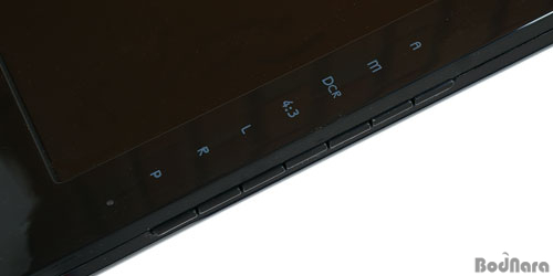 OSD ÄÁÆ®·Ñ·¯´Â ¿ìÃø ÇÏ´Ü¿¡ ¼öÁ÷À¸·Î ¹èÄ¡ÇßÀ¸¸ç, ¼ø¼´ë·Î ȸé ÀÚµ¿ Á¶Àý(A : deselect), ¸Þ´º (M : select), ¿øÅÍÄ¡ µ¿Àû ¸í¾Ïºñ (DCR : »ó), ¿øÅÍÄ¡ °íÁ¤ Á¾È¾ºñ (4:3 : ÇÏ), L(ÁÂ), R(¿ì), Àü¿ø(P)¹öưÀ̸ç, P ¹öư ¾Æ·¡ µ¿ÀÛ »óŸ¦ ³ªÅ¸³»´Â Ç¥½ÃµîÀÌ À§Ä¡ÇÑ´Ù.