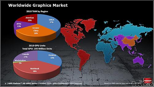 2010³â 2ºÐ±â GPU½ÃÀå¿¡¼ AMD°¡ 1µîÀ¸·Î ³ëÆ®ºÏ 56%, µ¥½ºÅ©Å¾ 45%ÀÇ Á¡À¯À²À» ´Þ¼ºÇß´Ù. 2011³â¿¡´Â ¿ÜÀåÇü ¹× ³»ÀåÇü ±×·¡ÇÈ ½ÃÀåÀ» ´Ù ÅëÆ²¾î 500~600¸¸´ë·Î ¿¹»óµÇ¸ç ½ÃÀåÀº Á¡Á¡ ´õ Ä¿Áú °ÍÀ¸·Î ³»´Ùº¸°í ÀÖ´Ù°í ÇÑ´Ù.