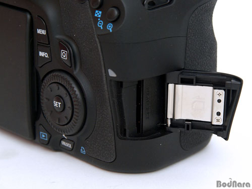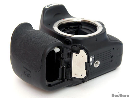 ¿ìÃø¿¡´Â SD ¸Þ¸ð¸® ½½·Ô Ä¿¹ö°¡ ´Þ·ÁÀÖ´Ù. 50D¿Í 7D±îÁö¸¸ ÇØµµ UDMA ¸ðµå¸¦ Áö¿øÇÏ´Â CF ¸Þ¸ð¸® ½½·ÔÀÌ »ç¿ëµÇ¾úÁö¸¸, »õ·Î Ãâ½ÃµÇ´Â 550D¿Í 60D´Â CFº¸´Ù ÀÛÀº SD ¸Þ¸ð¸® Ä«µå°¡ µé¾î°£´Ù. SD/SDHC/SDXC ¸Þ¸ð¸® ±Ô°ÝÀ» Áö¿øÇϰí ÀÖ´Ù.