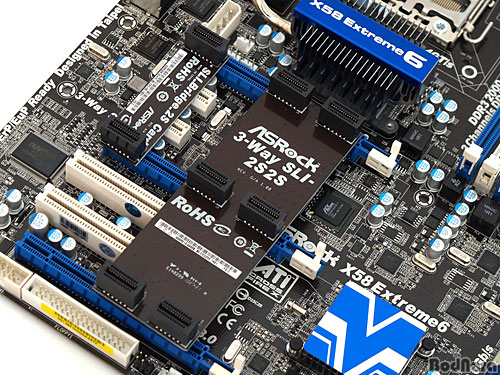 ÀÎÅÚ X58 Ĩ¼ÂÀº ÃÖ´ë 36°³ÀÇ PCI-Express 2.0 LaneÀ» Á¦°øÇϸç, X58Àº ¶óÀ̼¾½º Àû¿ë¿¡ µû¶ó ¸ÖƼ GPU ±â¼úÀÎ AMD CrossFire X¿Í ¿£ºñµð¾Æ (NVIDIA) SLi¸¦ ¸ðµÎ Áö¿øÇÒ ¼ö ÀÖ´Ù. IOH´Â ÀÎÅÚ ICH10RÀÌ »ç¿ëµÇ¾î 11°³ÀÇ USB 2.0 Æ÷Æ®¿Í 6°³ÀÇ SATA2 (3Gbps) Æ÷Æ®, ±×¸®°í SATA RAID 0/1/10/5¿Í Intel Matrix Storage, NCQ, AHCI, Hot Plug¸¦ Áö¿øÇÑ´Ù.