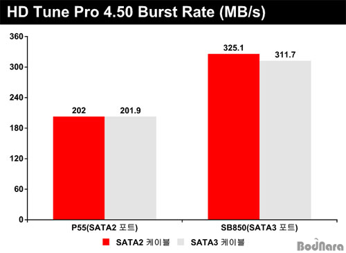 ¹Ý¸é, ¼ø°£ ÃÖ°í ¼º´ÉÀ» ¶æÇÏ´Â ¹ö½ºÆ® ·¹ÀÌÆ®ÀÇ °æ¿ì SATA2 Æ÷Æ®º¸´Ù SATA3 Æ÷Æ®¿¡¼ °¢ ÀÎÅÍÆäÀ̽ºÀÇ ÇÑ°è ´ë¿ªÆø¿¡ µû¸¥ º¯È¸¦ º¼ ¼ö ÀÖÀ¸¸ç, SATA3 Æ÷Æ®¿¡¼´Â ¿ÀÈ÷·Á SATA2 ÄÉÀ̺íÀ» ÀÌ¿ëÇÒ ¶§ º¸´Ù ³ôÀº ¹ö½ºÆ® ·¹ÀÌÆ® °ªÀ» ±â·ÏÇÑ °ÍÀ» È®ÀÎÇÒ ¼ö ÀÖ´Ù.