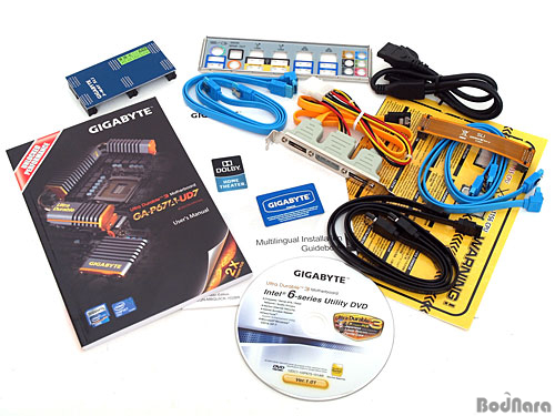 »ùÇÿ¡ Á¦°øµÈ ºÎ¼Ó¹°Àº »ç¿ëÀÚ ¸Å´º¾ó 1ºÎ¿Í ¸ÖƼ·©±ÍÁö ÀνºÅç °¡À̵åºÏ 1ºÎ, Àü¿ë I/O ½¯µå, Dolby Home Theater ·Î°í ½ºÆ¼Ä¿, GIGABYTE ·Î°í ½ºÆ¼Ä¿, µå¶óÀ̹ö ¹× À¯Æ¿¸®Æ¼ DVD 1Àå, 2-Way SLi Çʸ§ ÄÉÀ̺í 1°³, 3-Way SLi Ä¿³ØÅÍ 1°³, SATA ÄÉÀ̺í 4°³, eSATA ÄÉÀ̺í 2°³, eSATA Àü¿ø ÄÉÀ̺í 1°³, eSATA ¹éÆÐ³Î Ãâ·Â Æ÷Æ® 1°³, CPU ¼ÒÄÏ ¼³Ä¡ ÁÖÀÇ °¡À̵å 1ÀåÀ» Á¦°øÇÑ´Ù.