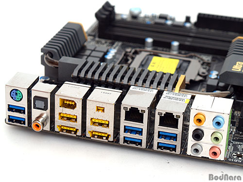 ¹éÆÐ³Î Ãâ·ÂÀº PS2 Æ÷Æ®, USB 2.0 2Æ÷Æ®, USB 3.0 (Ǫ¸¥»ö) 6Æ÷Æ®, Coaxial/ Optical SPDIF Ãâ·Â Æ÷Æ® °¢ 1°³, eSATA3 2Æ÷Æ®, µà¾ó ±â°¡ºñÆ® ÀÌ´õ³Ý Æ÷Æ®, ¾Æ³¯·Î±× ¿Àµð¿À 6Æ÷Æ®, IEEE1394a 2Æ÷Æ®¸¦ Á¦°øÇÑ´Ù.