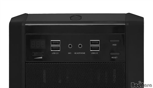 ÃÖ»ó´Ü 5.25ÀÎÄ¡ º£ÀÌ¿¡´Â ½Ã½ºÅÛ ¿Âµµ¿¡ µû¶ó ÆÒ¼Óµµ¸¦Á¶ÀýÇÒ ¼ö ÀÖ´Â ÆÒÄÁÆ®·Ñ·¯, ³»ºÎ ¿Âµµ¸¦ ¸ð´ÏÅ͸µ ÇÒ ¼ö ÀÖ´Â LED ¿Âµµ Ç¥½Ãâ, 4°³ÀÇ USB 2.0 Æ÷Æ® ¹× ÇìµåÆù/¸¶ÀÌÅ© ´ÜÀÚ, ±×¸®°í »óÅ ǥ½Ã LED, ¸®¼Â ¹öưµîÀÌ Æ÷ÇÑµÈ ÄÁÆ®·Ñ ¹Ú½º°¡ Á¦°øµÈ´Ù.