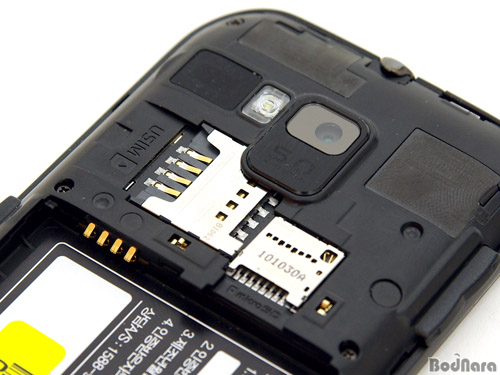 ÈÄ¸é ¹èÅ͸® Ä¿¹ö¸¦ ¿¸é USIM Ä«µå¿Í microSD ¿ÜÀå ¸Þ¸ð¸® ½½·Ô, ±×¸®°í ¹èÅ͸®¸¦ ÀåÂøÇÒ ¼ö ÀÖ´Ù. USIM Ä«µå´Â ¸Þ¸ð¸®, ¹èÅ͸®¿Í´Â ´Ù¸¥ ÂÊÀ¸·Î Àå/Å»ÂøÀÌ °¡´ÉÇÏÁö¸¸, ¿ÜÀå ¸Þ¸ð¸®´Â ¹èÅ͸®¸¦ Á¦°ÅÇØ¾ß¸¸ ³Ö°Å³ª »¬ ¼ö ÀÖ´Ù. ÀÌ´Â ¾Èµå·ÎÀ̵å 2.2 ÇÁ·Î¿ä ¹öÀüºÎÅÍ ¿ÜÀå ¸Þ¸ð¸®¿¡ ¾ÖÇø®ÄÉÀÌ¼Ç ¼³Ä¡°¡ °¡´ÉÇØÁ³±â ¶§¹®¿¡, Àü¿øÀÌ ÄÑÁø »óÅ¿¡¼ ¿ÜÀå ¸Þ¸ð¸®¸¦ Á¦°ÅÇØ ½ÇÇà ÁßÀÌ´ø ÇÁ·Î±×·¥¿¡ ¹®Á¦°¡ »ý±âÁö ¾Êµµ·Ï ¼³°èÇÑ °ÍÀ¸·Î º¸ÀδÙ.