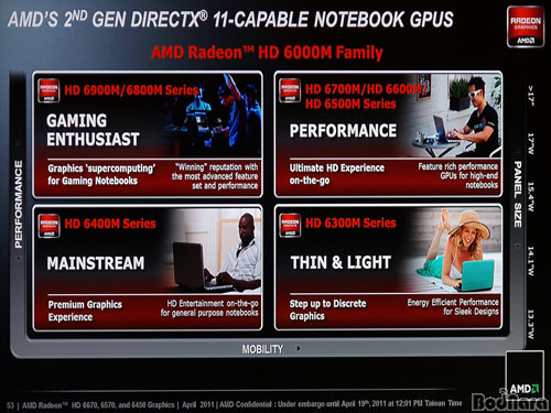º¸±ÞÇü ¹× Àú°¡Çü ¶óµ¥¿Â HD 6000 ½Ã¸®Áî 3Á¾°ú ¼Ò°³¿Í ÇÔ²² ³ëÆ®ºÏ¿ë ¶óµ¥¿Â HD 6000M ½Ã¸®Áîµµ ¼Ò°³µÇ¾ú´Ù. ³ëÆ®ºÏ¿ë ¶óµ¥¿Â HD 6000M ½Ã¸®Áî ¿ª½Ã µ¥½ºÅ©Å¾ ¶óÀξ÷ó·³ ÇÏÀÌ¿£µå¿Í ÆÛÆ÷¸Õ½º, ¸ÞÀνºÆ®¸², Àú°¡ÇüÀ¸·Î ³ª´µ¸ç, ÇÏÀÌ¿£µåºÎÅÍ HD 6900M/ 6800M ½Ã¸®Áî, HD 6700M/ 6600M/ 6500M ½Ã¸®Áî, HD 6400M ½Ã¸®Áî, HD 6300M ½Ã¸®Áî ¼øÀÌ´Ù.