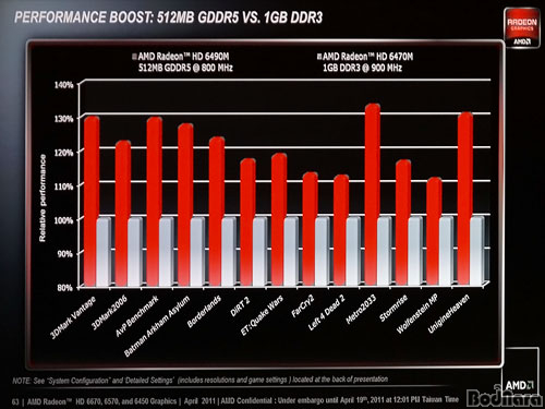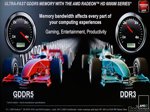 ³ëÆ®ºÏ¿ë ¶óµ¥¿Â HD 6000M ½Ã¸®Áî´Â DDR3 Áö¿ø »Ó¸¸ ¾Æ´Ï¶ó GDDR5 ¸Þ¸ð¸®¸¦ µµÀÔÇÏ¸é¼ °íŬ·° Áö¿øÀ» ¹ÙÅÁÀ¸·Î ´ë¿ªÆøÀ» ´Ã·Á °ÔÀÌ¹Ö µîÀÇ Àü¹ÝÀûÀΠȯ°æ¿¡¼ ÀÌÀü ¼¼´ëº¸´Ù ó¸® ¼º´ÉÀÌ °³¼±µÇ¾ú´Ù.