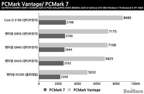 Áï, ÄÚ¾î i3 2100ÀÌ ¸ðµç °æ¿ì °¡Àå ³ôÀº ¼º´ÉÀ» Á¦°øÇϸç, ÆæÆ¼¾ö °è¿Àº Ŭ·°ÀÌ ³ôÀº ¼øÀ¸·Î G850(2.9GHz)/ G840(2.8GHz)/ G620(2.6GHz)/ E5200(2.5GHz) ³ôÀº ¼º´ÉÀ» Á¦°øÇÑ´Ù.