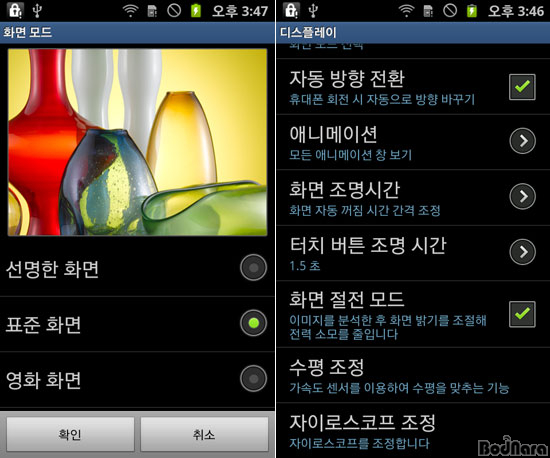 ÀÌ¿¡ µû¶ó °¶·°½Ã S II¿¡´Â µð½ºÇ÷¹ÀÌ ¿É¼Ç¿¡ È¸é ¸ðµå°¡ µé¾î°¡ »ç¿ëÀÚ°¡ ¼±¸íÇÑ È¸é°ú Ç¥ÁØ È¸é, ¿µÈ È¸é µî ¿øÇÏ´Â ¸ðµå¸¦ ¼±ÅÃÇÒ ¼ö ÀÖ°Ô µÇ¾ú´Ù. ¶Ç AMOLED Ư¼º»ó ȸéÀÌ ¹à°Å³ª Èò»ö ¹è°æÀÌ ¸¹ÀÌ Ç¥ÇöµÇ´Â °æ¿ì µð½ºÇ÷¹ÀÌ ¼Òºñ Àü·ÂÀÌ ³ô¾ÆÁö´Â °ÍÀ» °í·ÁÇØ ȸé ÀýÀü ¸ðµå¸¦ Æ÷ÇÔ½ÃŰ°í ±â´Éº°·Î µû·Î ¹à±â Á¶ÀýÀÌ °¡´ÉÇÏ°Ô ¸¸µé¾ú´Ù.
