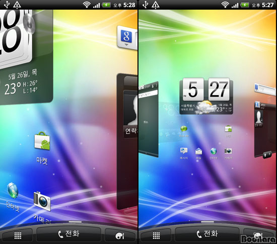 ¼¾¼¼À̼ǿ¡ µé¾î°£ HTC Sense 3.0ÀÇ °£´ÜÇÑ µ¿ÀÛ È¸éÀÇ À§ÀÇ ¿µ»óÀ» ÅëÇØ º¼ ¼ö ÀÖ´Ù. HTC¸¸ÀÇ Æ¯Â¡ÀÎ ½Ã°è¿Í ³¯¾¾ ȸéÀº Ç® ȸéÀ» ÀÌ¿ëÇØ ´õ ½Ç°¨³ª´Â ¿µ»ó°ú ¼Ò¸®·Î Ç¥ÇöµÈ´Ù. ¶ÇÇÑ ¸Þ´º¿¡¼´Â ¼³Ä¡µÈ ¾ÖÇø®ÄÉÀÌ¼Ç °¡¿îµ¥ ÀÚÁÖ »ç¿ëÇÏ´Â ¾Û ¸ñ·ÏÀ̳ª ´Ù¿î·Îµå ¹ÞÀº ¸ñ·ÏÀ» º°µµ·Î º¸¿©ÁØ´Ù.