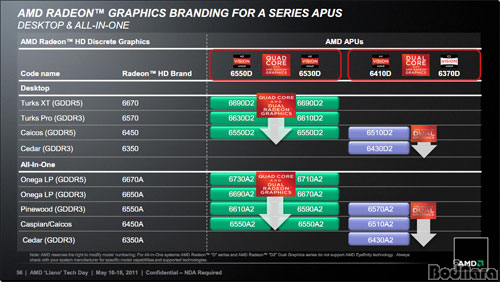 ÇÑÆí, ¶ó³ë APU´Â º¸Á¶Àü¿ø Ä¿³ØÅͰ¡ ¾ø´Â ¸ÞÀνºÆ®¸² ±Þ HD 6000 ½Ã¸®Áî¿Í ±âÁ¸ Hybrid CrossFire¿¡ ´ëÀÀÇÏ´Â µà¾ó ±×·¡ÇÈ ±¸¼ºÀÌ °¡´ÉÇѵ¥, µà¾ó ±×·¡ÇÈ ±¸¼º½Ã »õ·Î¿î ¸ðµ¨¸íÀÇ Á¢¹Ì»ç·Î 2¸¦ »ç¿ëÇØ(HD 6550D¿Í HD 6670ÀÇ µà¾ó ±×·¡ÇÈ ±¸¼º ¸ðµ¨¸íÀº HD 6690D2 ÀÌ´Ù) 2°³ÀÇ ±×·¡ÇÈ Äھ ÀÌ¿ëÇÑ µà¾ó ±×·¡ÇÈ ±¸¼º ¸ðµ¨ÀÓÀ» ³ªÅ¸³½´Ù.