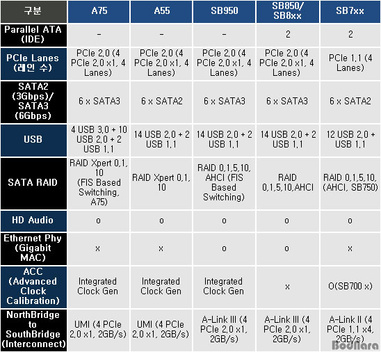 ¶ó³ë APU¿Í ȣȯµÇ´Â ¼ÒÄÏ FM1 Áö¿ø FCH A75/ A55´Â ±âÁ¸ A-Link II/ III¿¡¼ UMI(Unified Media Interface)·Î ¸íĪÀ» º¯°æÇÑ ÀÎÅÍÆäÀ̽º¸¦ ÅëÇØ 2GB/sÀÇ ´ë¿ªÆøÀ¸·Î ¿¬°áµÇ¸ç, ±×·¡ÇȰú UMI¿¡ ÇÒ´ç ÈÄ ³²Àº 4°³ÀÇ PCIe LaneÀ¸·Î Ãß°¡ PCIe ½½·ÔÀ̳ª SATA/ USB/ IEEE1394 µîÀÇ Ãß°¡ ÄÁÆ®·Ñ·¯¿¡ ÇÒ´çÇØ ¸ÞÀκ¸µå ½ºÆå Á¶ÀýÀ» À§ÇÑ À¯¿¬¼ºÀ» Á¦°øÇÑ´Ù.