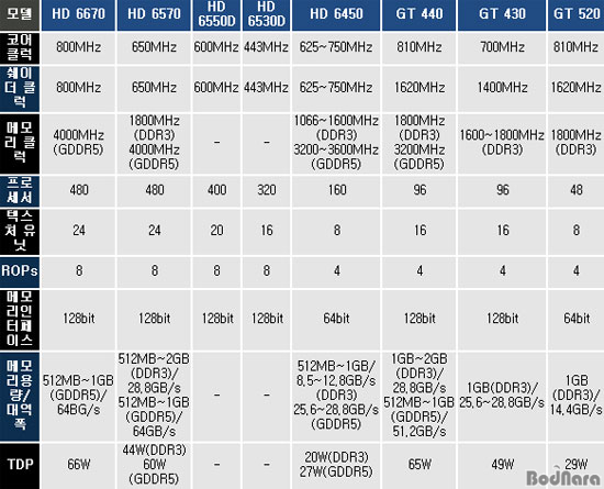 ¶ó³ë APU ³»Àå ±×·¡ÇÈ ÄÚ¾î´Â HD 6570°ú HD 6450 »çÀÌ¿¡ Æ÷Áö¼Å´× µÈ´Ù