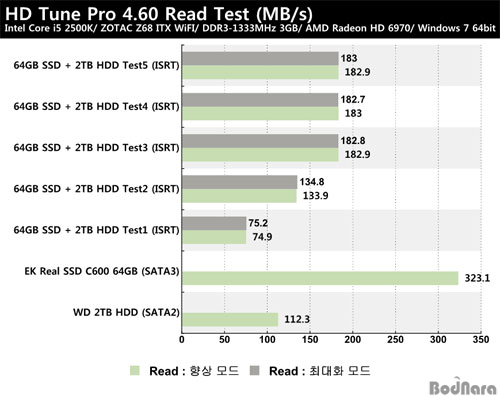 2011³â 7¿ù 25ÀÏ ÇöÀç ±¹³»¿¡¼ ±¸¸ÅÇÒ ¼ö ÀÖ´Â mSATA SSD°¡ ¾ø´Â °ü°è·Î SATA 6Gbps ÀÎÅÍÆäÀ̽ºÀÇ EKDrive Real SSD C600°ú WD ijºñ¾îºí·¢ 2TB¸¦ ÀÌ¿ëÇØ ISRT¸¦ ±¸¼ºÇÑ ¼º´É Çâ»óµµ¸¦ Å×½ºÆ®Çß´Ù.