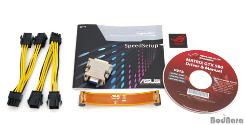 ºÎ¼Ó¹°·Î´Â 8ÇÉ º¸Á¶Àü¿ø º¯È¯ ÄÉÀ̺í(6ÇÉ 2°³¿¡¼ 8ÇÉ 1°³·Î º¯È¯) 2°³¿Í Speed Setup ¼³¸í¼, SLI ºê¸´Áö, D-Sub to DVI º¯È¯ ÄÉÀ̺í, ROG ½ºÆ¼Ä¿, µå¶óÀ̹ö ¹× À¯Æ¿¸®Æ¼ ¼³Ä¡ µð½ºÅ©(PDF Çü½ÄÀÇ Á¦Ç° ¸Þ´º¾ó Æ÷ÇÔ)°¡ Á¦°øµÈ´Ù.