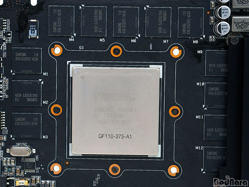 GTX580 MATRIX¿¡ žÀçµÈ GF110ÀÇ ÄÚ¾î Ŭ·°Àº 816MHz·Î ·¹ÆÛ·±½º Á¦Ç°ÀÇ 772MHzº¸´Ù »óÇâµÈ ÀÛµ¿¼Óµµ¸¦ Á¦°øÇϸç, ¸Þ¸ð¸® Ŭ·°Àº ·¹ÆÛ·±½º¿Í µ¿ÀÏÇÑ 4,008MHzÀÌ´Ù. (»ï¼º K4G10325FE-HC04, 0.4ns, GDDR5 1536MB)
