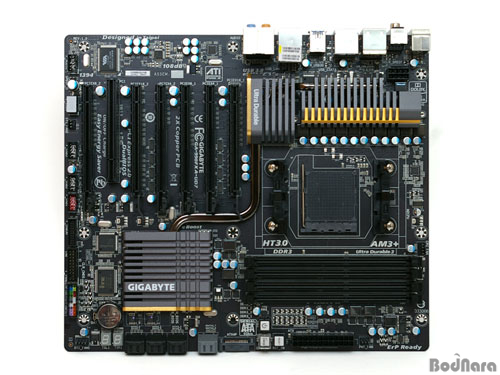 990FXA-UD7Àº ¾Õ¼ ¾ð±ÞÇßµí AMD 9 ½Ã¸®ÁîÀÇ ÇÏÀÌ¿£µå Ĩ¼ÂÀÎ 990FX Ĩ¼ÂÀ» »ç¿ëÇÑ ±â°¡¹ÙÀÌÆ® Ç÷¡±×½Ê ¸ÞÀκ¸µå·Î, 4°³ÀÇ PCIe x16 ½½·ÔÀ» ÀÌ¿ëÇÑ AMD¿Í NVIDIAÀÇ 4way ¸ÖƼ GPU ±¸¼ºÀÌ °¡´ÉÇÏ´Ù.