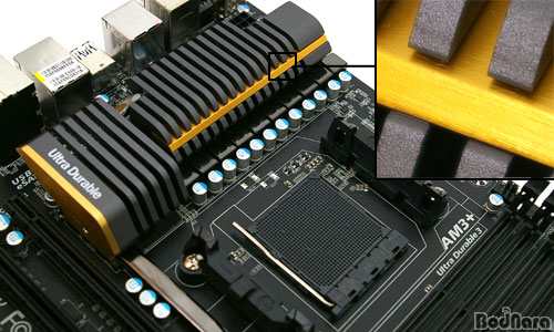 990FXA-UD7´Â ÀϹÝÀûÀ¸·Î ÆäÀÌÁ´Ù º°µµÀÇ ¸ð½ºÆê°ú ¸ð½ºÆê µå¶óÀ̹ö°¡ »ç¿ëµÇ´Â Àü¿øºÎ¿Í ´Þ¸® ¸ð½ºÆê°ú ¸ð½ºÆê µå¶óÀ̹ö°¡ ÅëÇÕµÈ Vishay SiliconixÞäÀÇ DrMOS SiC769CD°¡ »ç¿ëµÇ¾ú´Ù.