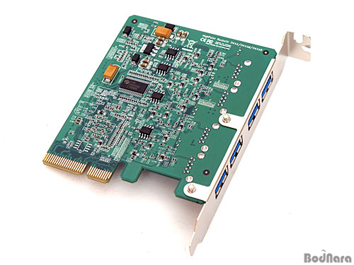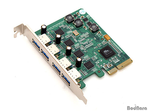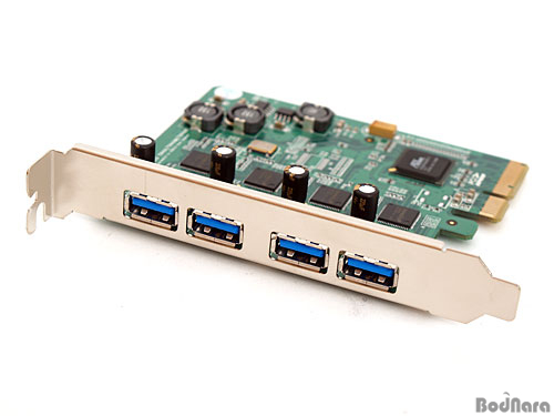 ÇÏÀÌÆ÷ÀÎÆ® RU1144A È®Àå Ä«µå´Â ÃÑ 4°³ÀÇ USB 3.0 ÀåÄ¡¸¦ Áö¿øÇϸç, ±âÁ¸ È®Àå Ä«µåµéÀÌ ÄÁÆ®·Ñ·¯ Çϳª¿¡¼ 2°³ ¶Ç´Â 4°³¸¦ µ¿½Ã¿¡ °øÀ¯ÇÏ´Â ¹æ½Ä°ú ´Þ¸® Æ÷Æ®º°·Î 4°³ÀÇ USB 3.0 ÄÁÆ®·Ñ·¯¸¦ °³º°·Î ÀåÂøÇß´Ù. °¢ ÄÁÆ®·Ñ·¯´Â PEX8609 PCIe 2.0 ½ºÀ§Ä¡ Ĩ¼ÂÀ¸·ÎºÎÅÍ PCIe 2.0 x1 ·¹ÀÎÀ» ÇÒ´ç¹Þ¾Æ USB 3.0ÀÇ À̷лó ´ë¿ªÆøÀÎ 5Gbps¸¦ Æ÷Æ®º°·Î ±¸ÇöÇÒ ¼ö ÀÖ´Ù.