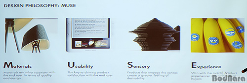 MUSE´Â Material, Usability, Sensory, ExperienceÀÇ ¾àÀÚ·Î ±Ý¼Ó ÇÕ±Ý ÇÃ¶ó½ºÆ½µî ´Ù¾çÇÑ ¼ÒÀçÀÇ Á¶ÇÕ, À¯¿ë¼ºÀ» °³¼±ÇÑ »ç¿ë ÆíÀǼº, °¨°¢Àû ¸Å·ÂÀ» À§ÇÑ ´Ù¾çÇÑ ¿¹¼úÀû ¿ä¼Ò Á¶ÇÕ, ¹× ÀϰüµÈ °æÇèÀ» À§ÇÑ Á÷°üÀûÀÎ ±â´ÉÀ» ÀǹÌÇÑ´Ù.