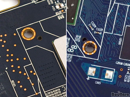 ¿ì·¹Åº ÄÚÆÃµÈ XFX ¶óµ¥¿Â HD 6950 DD EditionÀÇ PCB(ÁÂ)¿Í ÀϹÝÀûÀÎ PCB(¿ì)