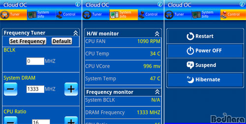 Æ©´× ±â´ÉÀº CPU¿Í ¸Þ¸ð¸®, VGA, PCI-E Á֯ļö ¹× Àü¾ÐÀ» Á¶ÀýÇÒ ¼ö ÀÖÀ¸¸ç, Ĩ¼Â¿¡ µû¶ó ¼³Á¤°ªÀº ´Þ¶óÁø´Ù. ½Ã½ºÅÛ Á¤º¸´Â CPU ¿Âµµ¿Í ÆÒ ¼Óµµ, CPU Àü¾Ð ¹× ½Ã½ºÅÛ ¿Âµµ µîÀ» ½Ç½Ã°£À¸·Î Á¦°øÇØ ÄÄÇ»ÅÍ ½Ã½ºÅÛÀÇ »óŸ¦ üũÇÒ ¼ö ÀÖ´Ù.