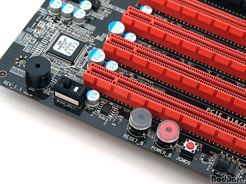 ÃÑ 6°³ÀÇ PCI-Express x16 ÇüÅÂÀÇ ½½·ÔÀ» Á¦°øÇÏ´Â ÀÌ Á¦Ç°Àº °¡Àå ù ¹øÂ° ºÓÀº»ö ½½·ÔÀÌ »÷µðºê¸´Áö ÇÁ·Î¼¼¼ÀÇ PCIe ÄÁÆ®·Ñ·¯¿Í ¿¬°áµÇ¾î ½ºÀ§Ä¡ IC¸¦ ÅëÇØ 16 ·¹ÀÎ (x16 Lane)À» Áö¿øÇÑ´Ù.