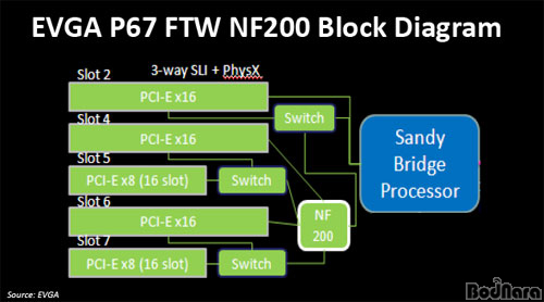 EVGA P67 FTW´Â »÷µðºê¸´ÁöÀÇ PCIe ÄÁÆ®·Ñ·¯¿Í ÀÎÅÚ P67 Ĩ¼Â, ±×¸®°í ¸ÖƼ ·¹ÀÎ È®ÀåÀ» À§ÇÑ ½ºÀ§Ä¡ÀÎ ¿£ºñµð¾Æ NF200 SLi°¡ Ãß°¡·Î »ç¿ëµÈ´Ù. »÷µðºê¸´Áö´Â ¸ÖƼ GPU ±â¼úÀÎ AMD CrossFire X¿Í ¿£ºñµð¾Æ SLi¸¦ ¸ðµÎ Áö¿øÇϸç, PCIe 2.0 x16 ·¹ÀÎ (Lane)À» PCIe 2.0 x8 + x8 ·¹ÀÎ ºÐÇÒÀ» Áö¿øÇÑ´Ù.