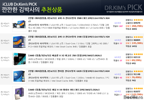 ¾ÆÀÌŬ·´ - 12¿ù 16ÀÏ ±âÁØ CPU ºÎºÐ Ãßõ »óǰ ¸®½ºÆ®