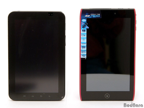 10.1ÀÎÄ¡ µð½ºÇ÷¹À̰¡ µé¾î°¬´ø ¾ÆÀÌÄڴϾÆÅÇ A500ÀÌ ¸ðÅä·Î¶ó ÁÜÀ̳ª »ï¼º °¶·°½ÃÅÇ 10.1ó·³ °¡·Î ¸ðµå¸¦ ±â¹ÝÀ¸·Î Á¦Ç°À» ¼³°èÇÑ °Í°ú ´Þ¸® 7ÀÎÄ¡ µð½ºÇ÷¹À̸¦ »ç¿ëÇÑ ¾ÆÀÌÄڴϾÆÅÇ A100Àº Àü¸éÀº ¼¼·Î, ÈĸéÀº °¡·Î ¸ðµå¸¦ ±âÁØÀ¸·Î Çϴ ƯÀÌÇÑ µðÀÚÀÎÀ» Çϰí ÀÖ´Ù.