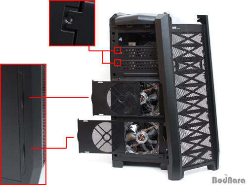 ÀϹÝÀûÀÎ ¹ÌµéŸ¿ö ÄÉÀ̽ºÀÇ ³ôÀ̰¡ 400mm ÃʹݴëÀÎ °Í°ú ´Þ¸® ¹ß۸®ÀÇ ³ôÀÌ´Â 535mm·Î, Àü¸é ÆÐ³Î¿¡´Â 5.25" º£ÀÌ ±âÁØ 10°³ ³ôÀÌÀÇ Å¸°ø¸ÁÀ» ±¸¼ºÇßÀ¸¸ç, ÀÌ Áß 3°³´Â ±âº» 5.25" º£À̷ΠȰ¿ëÇÒ ¼ö ÀÖÀ¸¸ç, 1°³ÀÇ 5.25" º£ÀÌ´Â ¾Ç¼¼¼¸®·Î Á¦°øµÇ´Â ¾î´ðÅ͸¦ ÀÌ¿ëÇØ ¿ÜºÎ 3.5" º£À̳ª 3.5"/ 2.5" HDD µð½ºÅ© ÀåÂøÀÌ °¡´ÉÇÏ´Ù.